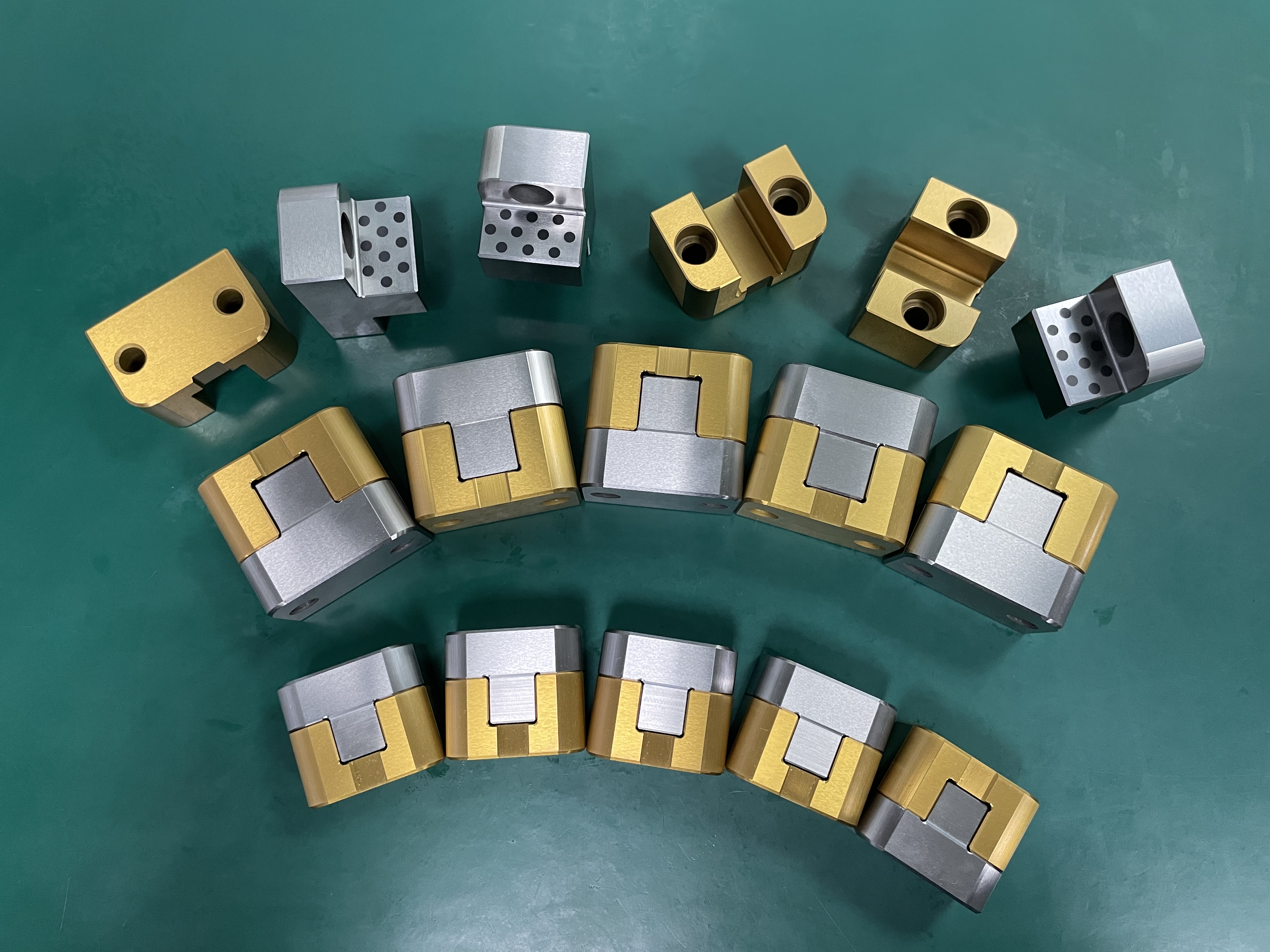 公件部分经过黑化处理,母件部分镀钛,更加坚硬耐磨。 它的定位是为了防止铁芯磨损和损坏。 模板可同时加工定位槽,保证导位固定块组件准确定位。